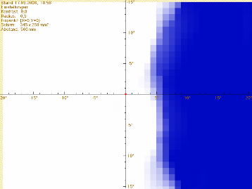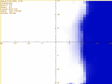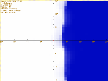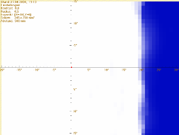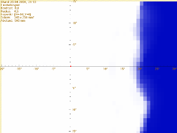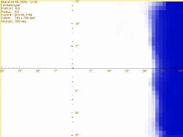 15.06.2008: Die letzte derzeit mögliche Einstellung mit meiner Hardware (TFT-Monitorgröße 17") ist erreicht und ermöglicht Übungen bis knapp über 60°. Dieser Bereich ist nun erreicht und wurde auch durch eine augenärztliche Untersuchung mit Gesichtsfeldmessung bestätigt.